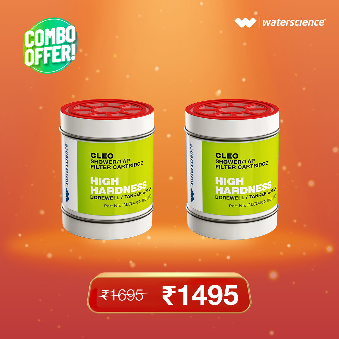 Replacement cartridges (pack of 2) for CLEO Shower & Tap Filters. Designed for water conditions in India. Pick the suitable cartridge after using your CLEO for 6 months.